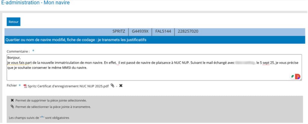 Contacter l’ANFR afin de donner la nouvelle immatriculation du navire.