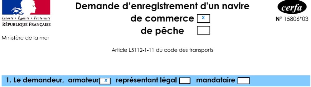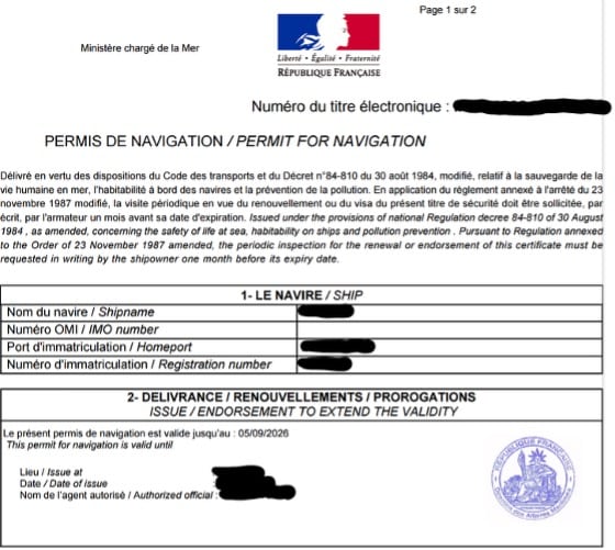 - Certificat d’enregistrement du navire